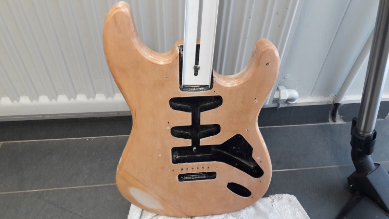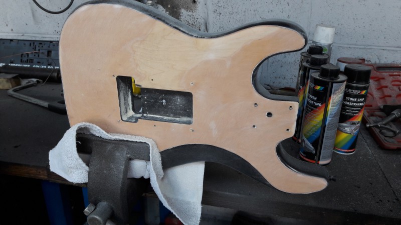 Le but était d'essayer moi-même de poncer et peindre, pour le fun, totalement en auto-didate, et sans dépenser plus que le prix de la gratte et la bombe de peinture ( 37 eur FDP in chez Emma-music)