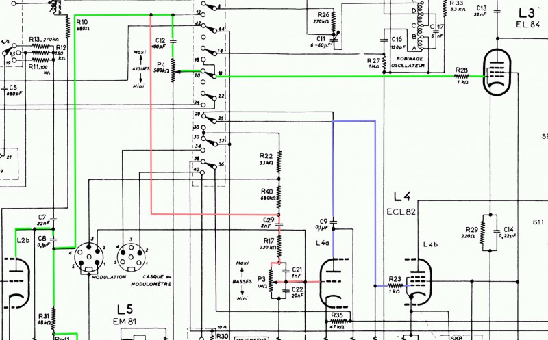 En regardant sur le schéma, j'ai l'impression que le signal amplifier par une ECC83 est envoyer aux 2 amplis ECL82 et EL84.