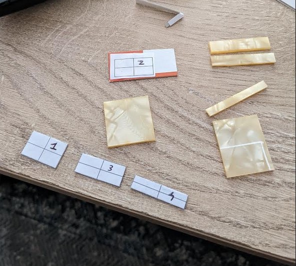 - Inlays miniblock (j'ai hésité avec le style des 345 comme dans retour vers le futur, mais trop compliqué à mettre en place).