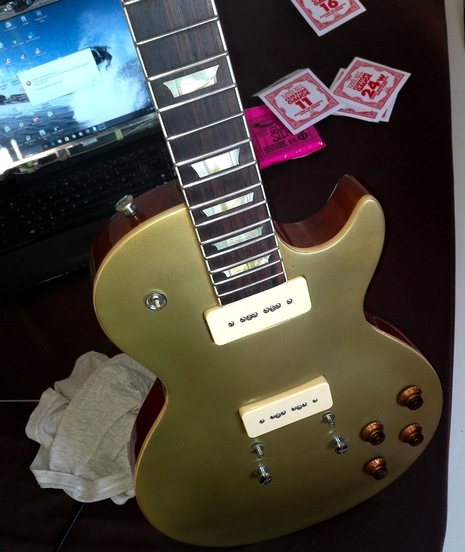 Les autocollants viennent de chez crox guitar, je les avaient commandé il y a longtemps pour un autre projet que je n'avais jamais fait , du coup je me suis dit autant les utiliser en test.