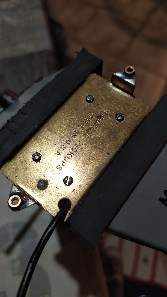 Après avoir passé un long moment à cette refonte, j'installe enfin les micros sur la gratte, mais remarque que les trous sur les pattes de fixation du micro chevalet sont trop petits pour les vis que j'ai à ma disposition (y compris celles fournies avec mes nouveaux micros). Ils donnent l'impression visuellement de ne pas avoir été taillés correctement.