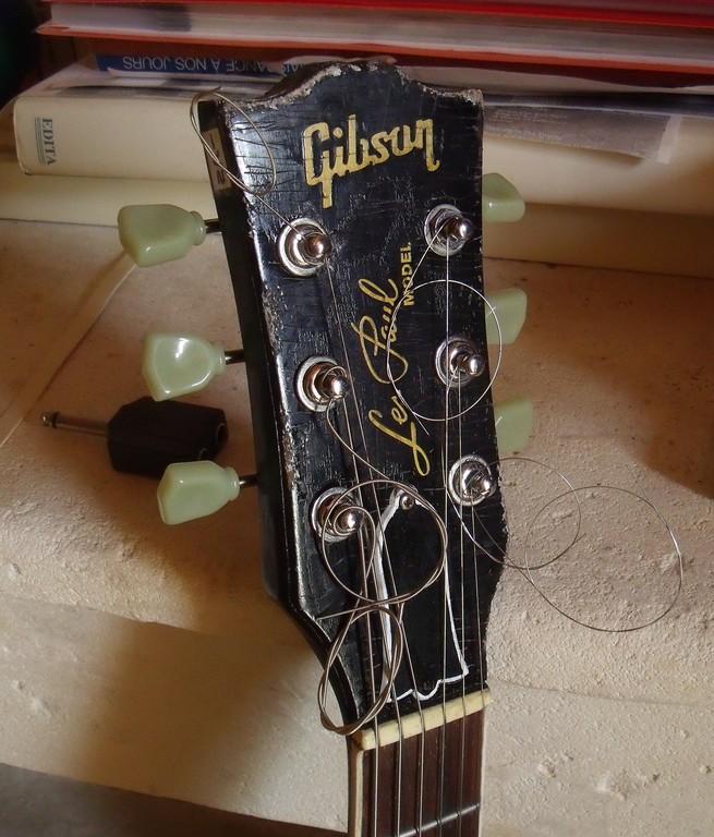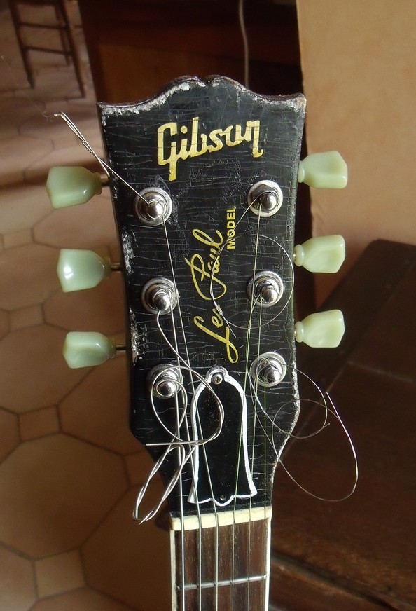 Salut tout le monde, possédant une vieille Epiphone (traînant dans le garage depuis des lustres), je me suis décidé de la relooker « correctement » (j’avais déjà tenté le coup en mode Mcgyver il n’y a pas très longtemps mais le résultat ne me convenait pas. Le but du jeu étant de transformer une tête Epiphone basique en tête gibson (donc open book).