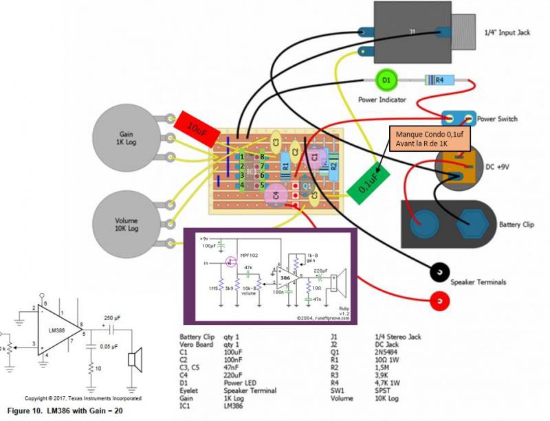 Sur la photo 2 avec une résistance de 5k on a un gain de 25