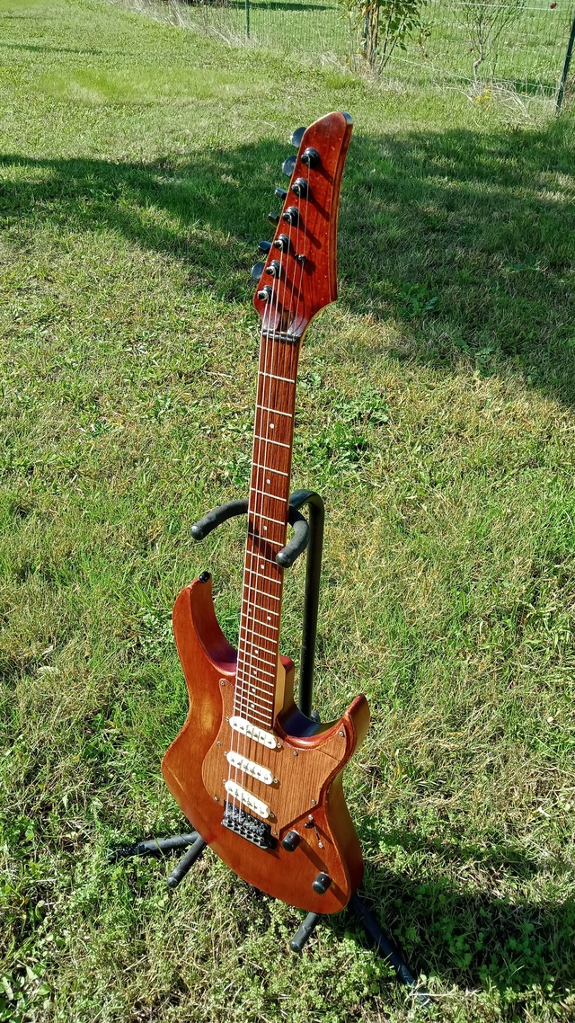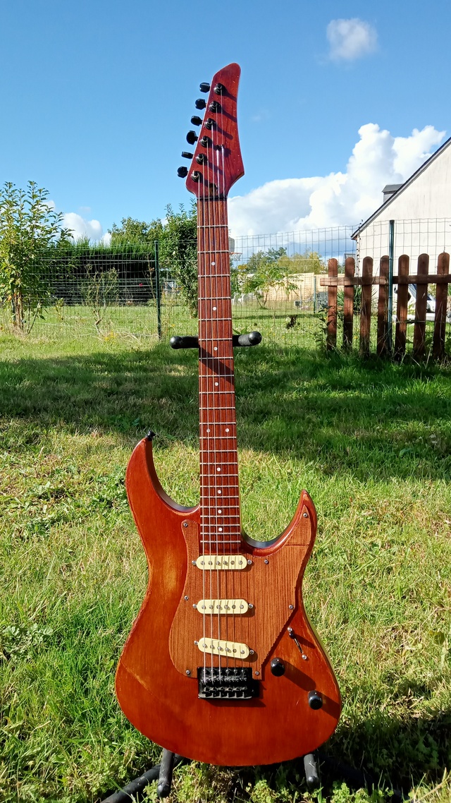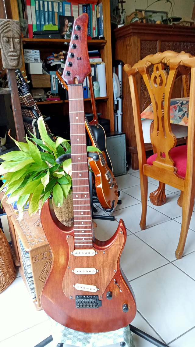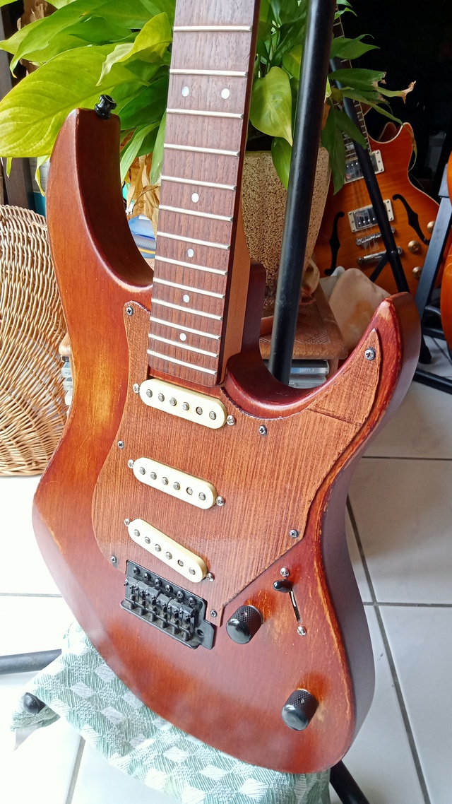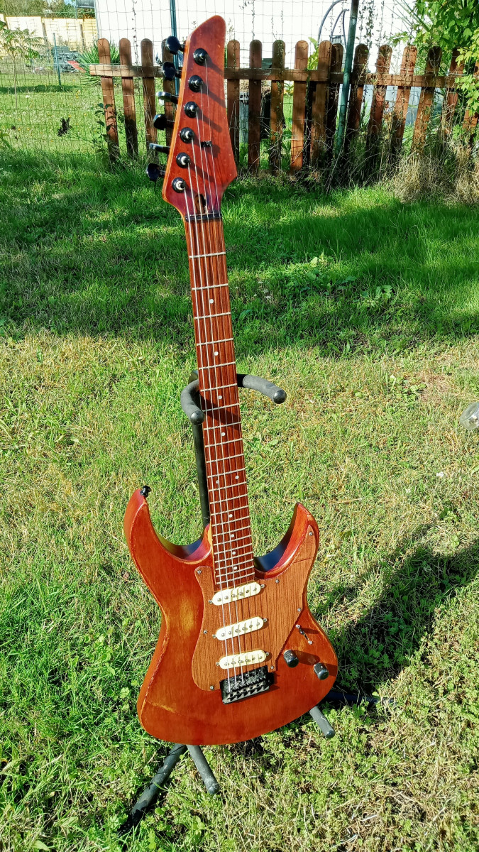 Presque sept mois de patience qui en valaient la peine. Je me trouve avec une guitare plutôt légère - pas repesée depuis mais elle faisait dans les 3,5Kg d'origine - très confortable et agréable à jouer pour moi, au look unique, personnel et très inspirant à mes yeux et qui de plus est sonne vraiment bien comme je l'avais pressenti lors de mes essaie à vide dans son jus d'origine. L'accastillage d'origine est correcte, le vibrato se comporte bien une fois correctement réglé, en tous cas c'est mon premier ressenti. Elle a l'air de tenir l'accord, à voir à l'usage à long terme mais le gros test de l'après-midi me conforte dans ce sens. La lutherie résonne bien, ça se sentait lors des différentes opérations et encore mieux une fois dévernie, mais aussi au jeu une fois recordée. Ca vibre bien et on le ressent bien physiquement. Résultat des courses, pour environs 300€ au total, je me retrouve avec une Stratocaster que je trouve toute aussi bien que mes trois autres Stratocasters avec juste un look différent et une personnalité sonore un peu différente aussi. Les micros de la série Pure Vintage (ici la version 61') ne m'ont pas déçu. Ils sonnent tout aussi bien que les 59' que j'ai installé sur une autre de mes Stratocasters avec la couleur attendue. Une réussite cette série semble-t-il en tous cas je les conseille. En quelques mots, je suis très content du résultat !