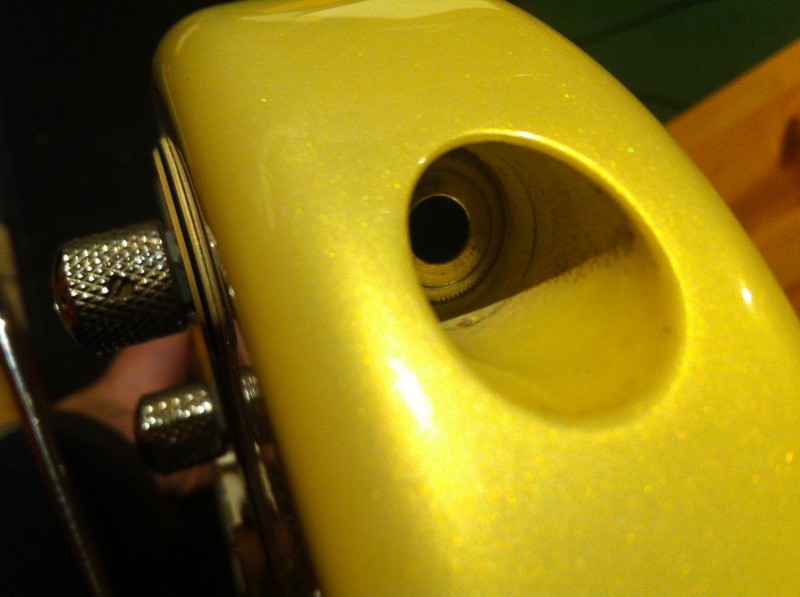 La solution de facilité serait de passer chez un luthier, mais je me dis que ça doit être faisable avec un peu d'imagination. Je pensais bloquer par l'exterieur le jack (avec une cheville et une vis) et adapter une douille pour serrer par l'interieur.