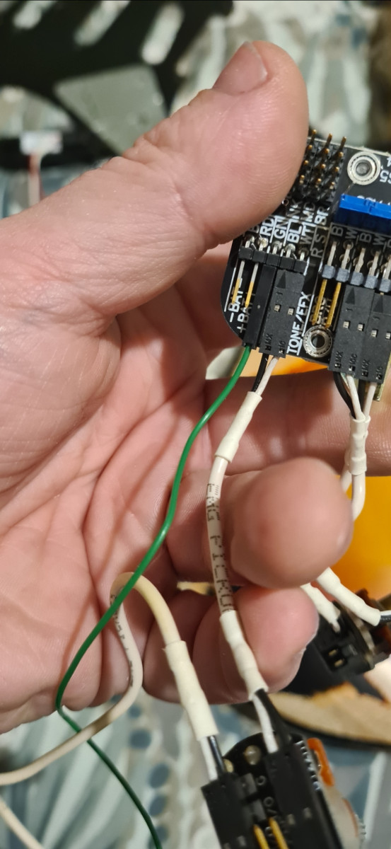 j'ai fait exactement le même montage que j'avais envoyé et ça ne va pas j'ai fait un essai hier soir et lorsque j'ai branché la guitare on entendait un super son les micros sont bien captés par l'ampli mais ni les potards tune et ni le volume ne n'agissait sur le son, la pédale ne fonctionnait pas tout s'allume (le coupe circuit et la diode de la pedale lorsqu'on appuis sur le switch ) mais aucun effet de la pedale sur le son.