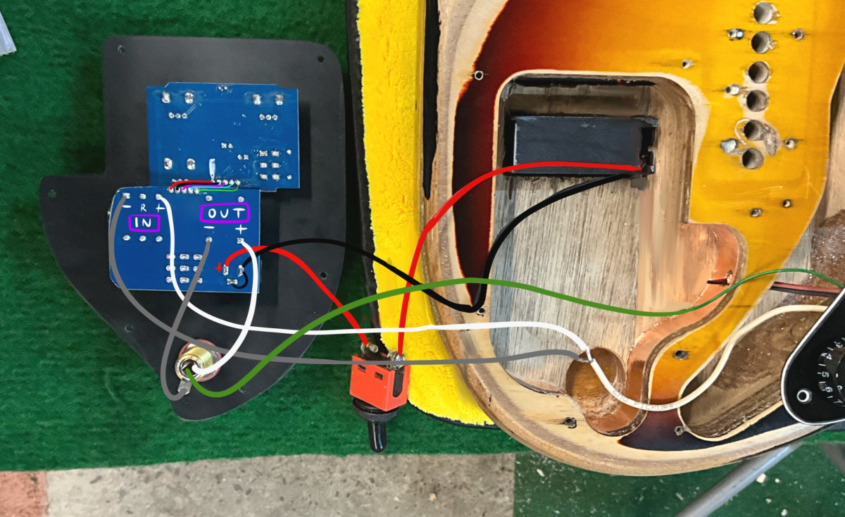 Merci Bruno, pour la protection des piles j'ai mis un coupe-circuit pour la pédale petite interrupteur avec une diode témoin et pour la pile du micro c'est le câble ring qui fait office de coupe-circuit apparemment.