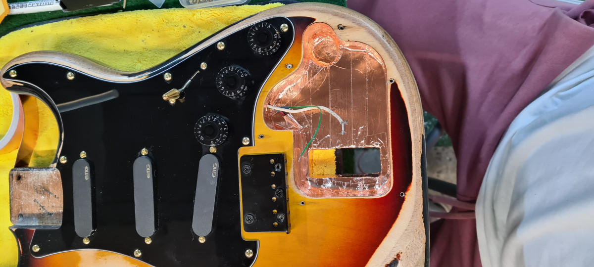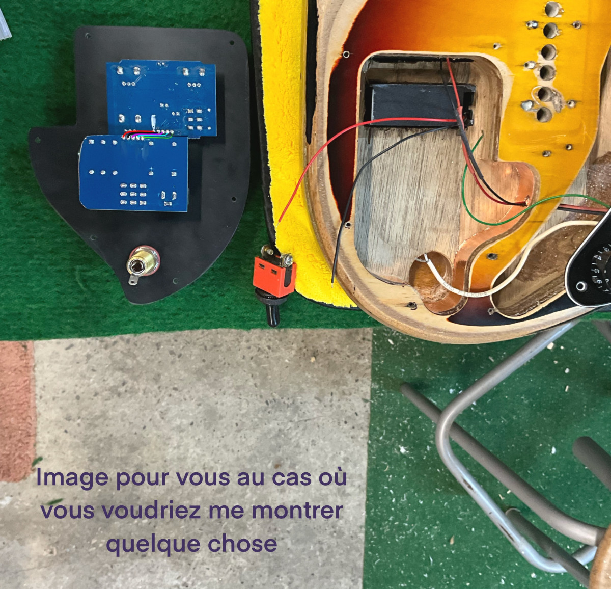 J'aimerais lui faire le plaisir de lui remettre en etat pour qu'il prenne du plaisir à rejouer sur sa gratte, j'ai acheter des micros emg, refait faire un manche identique, acheté une bonne mecanique, un pont, le jack bref j'ai tout racheté meme une plaque de fixation que j'ai fait personnalisé à son nom, tout est nikel et pret à etre monté sauf un point sur lequel je bute.