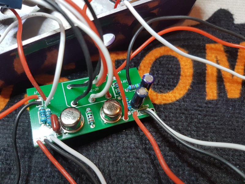 Je monte tout exactement comme sur l'image ci-dessus. Je vérifie, la led s'allume mais pas de son dans l'ampli j'ai bien un pop quand j'enclenche le footswich mais rien d'autre ... dommage car les deux premières plus complexes ca a fonctionné du premier coup.