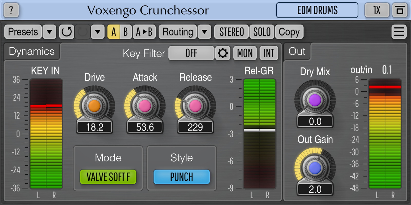 Snare : BBE Maximizer (ça c'était peut être pas une bonne idée) + Comp + EQ + délai ultra court + légère reverb.
