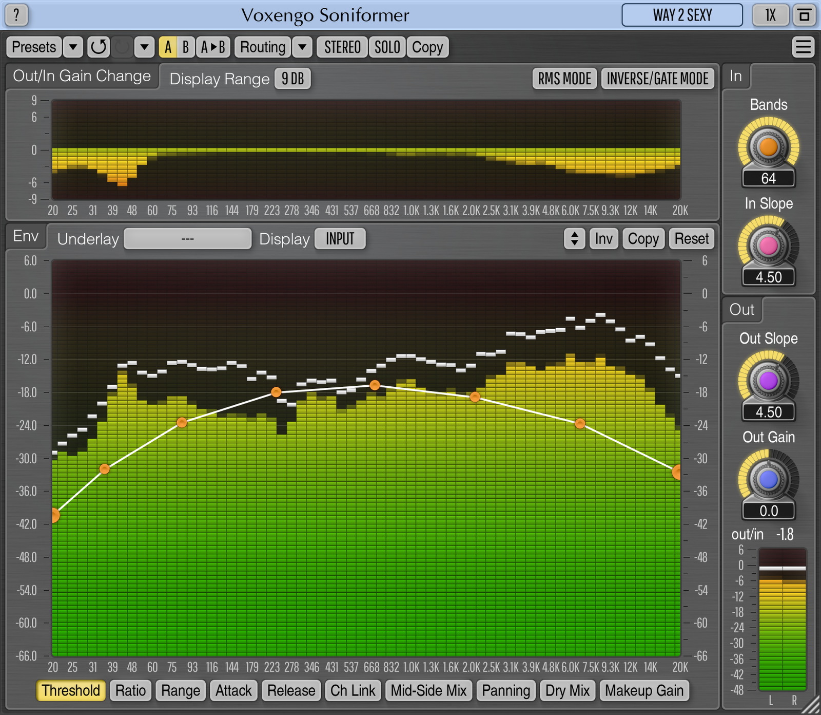 Ah j'ai aussi le Soniformer de Voxengo, que je considère comme un multibande. En fait tu peux créer un nombre de bandes assez important et aussi l'utiliser comme une sorte de compresseur dynamique.