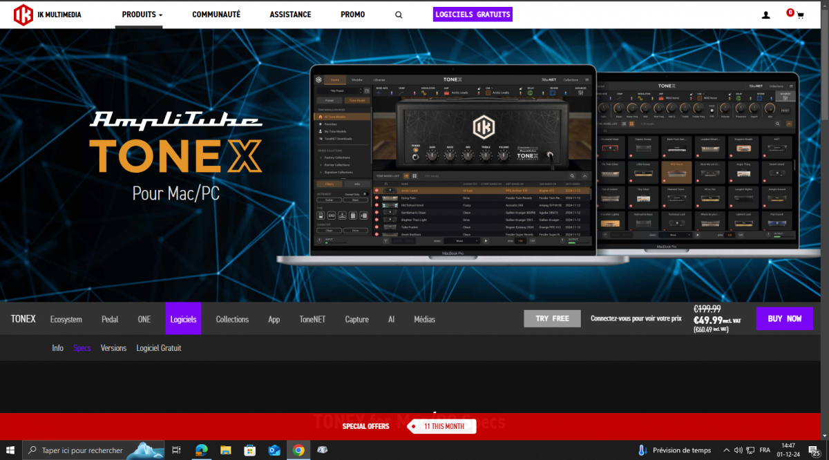 Chez Thomann, on a le choix entre la version spécial Thomann avec le pack Metal Gens inclus à 349€, et la version Anniversary avec plein de packs premium inclus à 449€.
