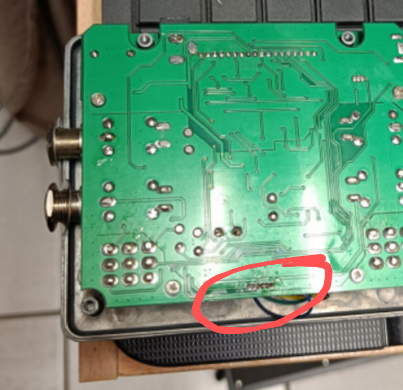 bref, la seule solution c'est de faire en sorte que la pédale ne crache pas un son et espérer qu'ils soient honnêtes...donc j'ai ouvert la pédale et là j'ai vu ce petit connecteur...et je me dis que si je le débranche, la pédale ne fonctionnera plus et et ils accepteront de prendre en compte la panne.