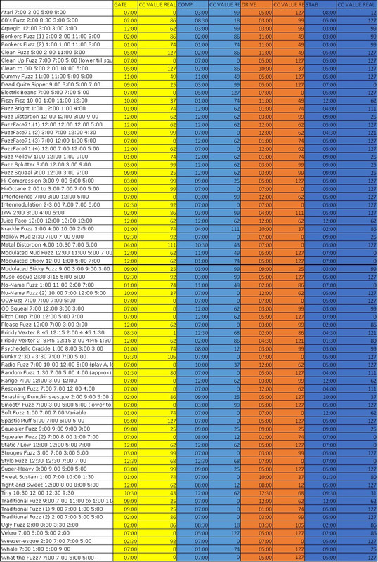 Ça fera 85 presets sous la main (69 dans les tableaux des forums, 10 du manuel chase bliss et 6 du site internet croisé sur tgp qui reference des presets pour pedales chase bliss)