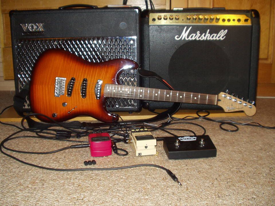 Surtout ne pas brancher le speaker out du Vox dans le poweramp in du Marshall !!!
