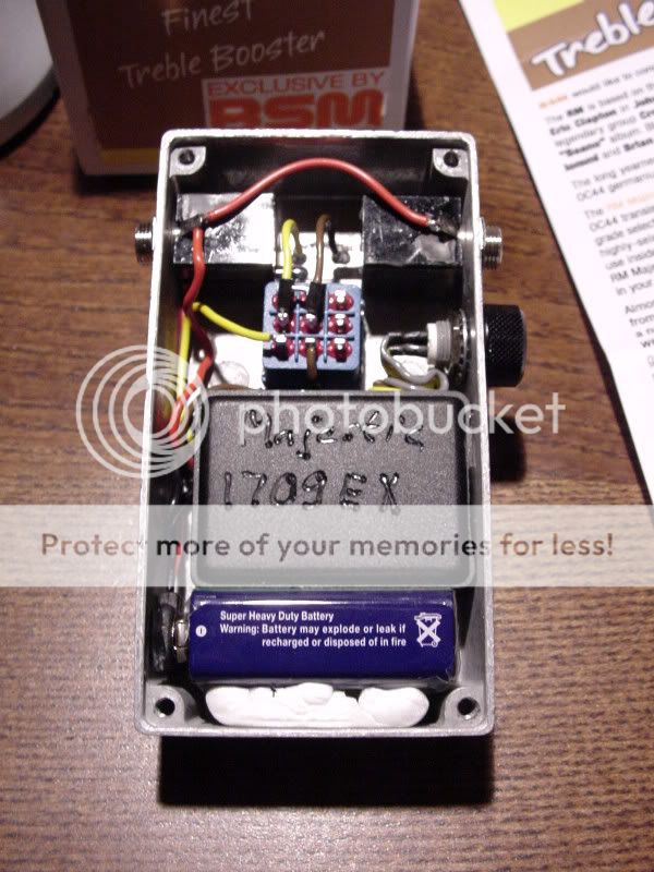 Vu la complexité du truc, (1 transistor, 4 resistances, 2 condensateurs, 1 potard, un switch...) ça se monte en deux heures, même pas besoin d'un circuit imprimé, une p'tite plaque à bandes et ça roule (et on trouve aussi les layouts sur le net).http://aronnelson.com/gallery/album18. C'est dix fois plus galère de souder la masse d'un micro sur le dos d'un potard de volume qu' une resistance, pour ceux qui douteraient de leur capacitée...