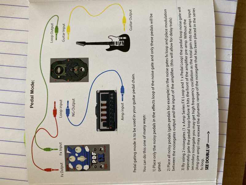 - Là où ça devient intéressant, c'est que je dois en parallèle venir câbler mon Noisegate (Stone Deaf FX pour les intéressé), avec quatre câble, dont voici le schèma ci-dessous. (Désolé, je sais pas pourquoi l'image est de travers sur le forum, elle est droite chez moi !)