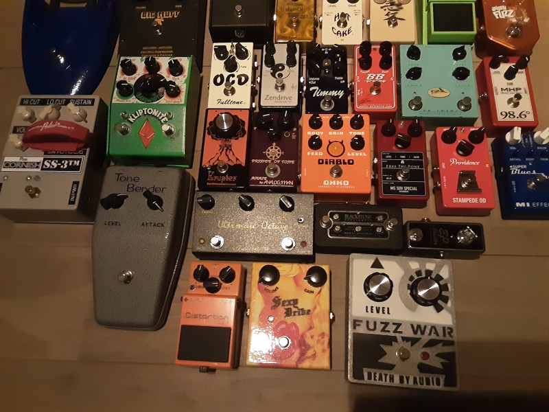 Rapide test de la fella qu’un élève m’a amenée cet après-midi. D’emblée le contrôle de Fuzz est nettement moins progressif que sur la ´68 : en gros quasi rien jusqu’à 80% de la course. Ça devient très vite explosif par la suite. Le niveau de gain maximal est aussi plus important, avec un côté naturellement plus tranchant.
