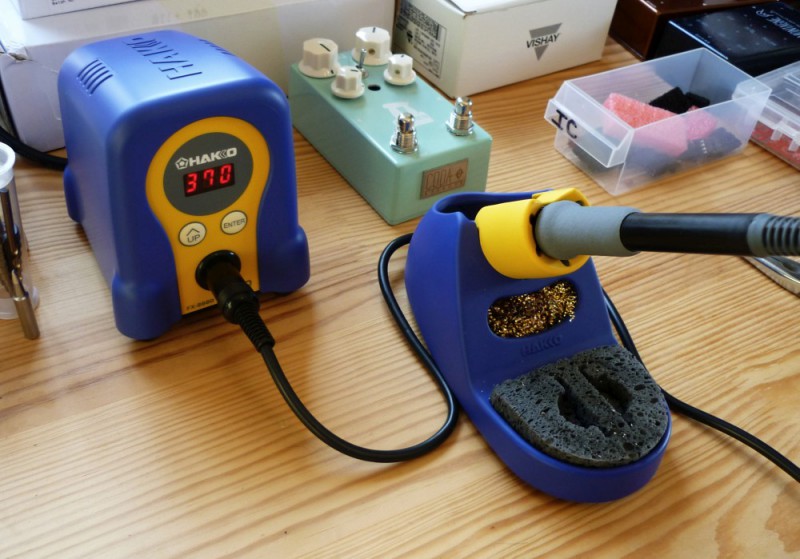 En tout cas, ça me change la vie ! Allumage en moins d'une minute, un vrai support avec tout ce qui faut pour un fer impeccable, réglage de la température avec des presets (je peux mettre du costaud pour les parties un peu plus résistantes style switchs et jacks)