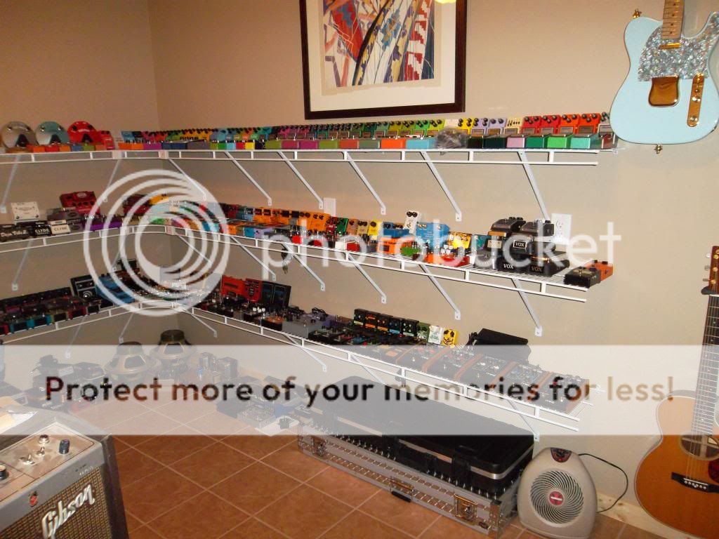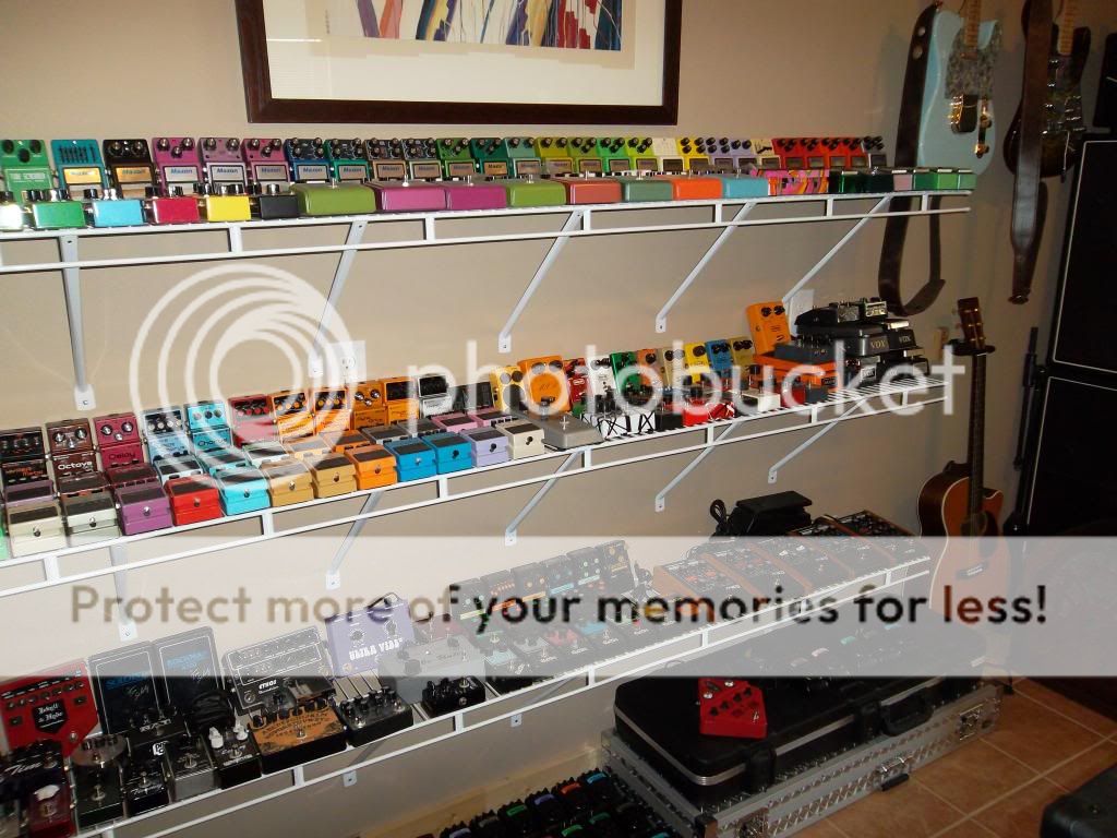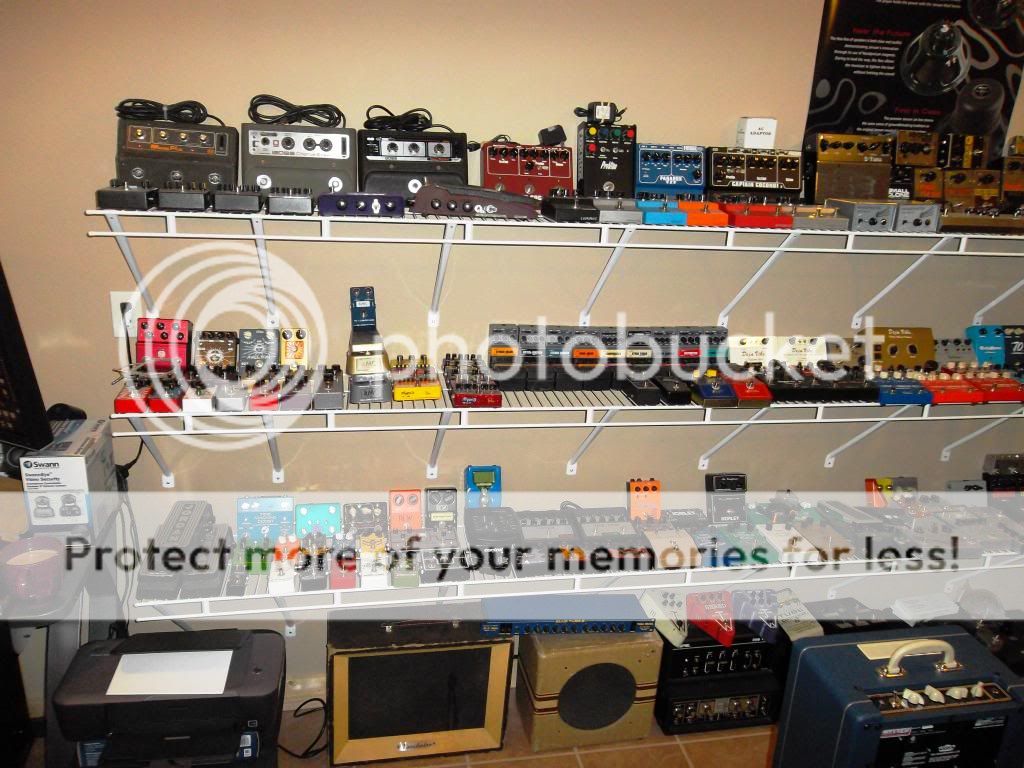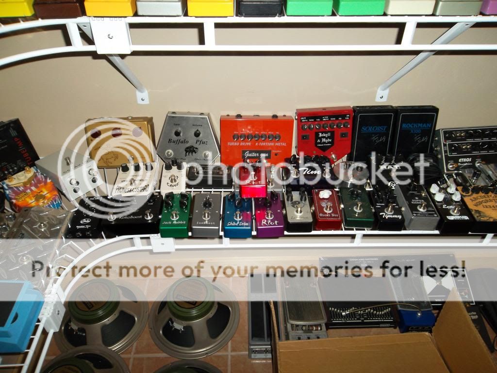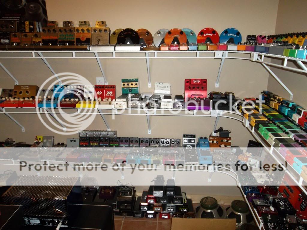 Sur Gear Page, il y avait un gars qui montrait sa collection, un placard avec des grosses boites en plastique dans lesquelles il y avait des centaines de pédales classées par marque, toutes les mad professor, les bearfoot, les EQD bien rangées, vraiment étrange en fait ...