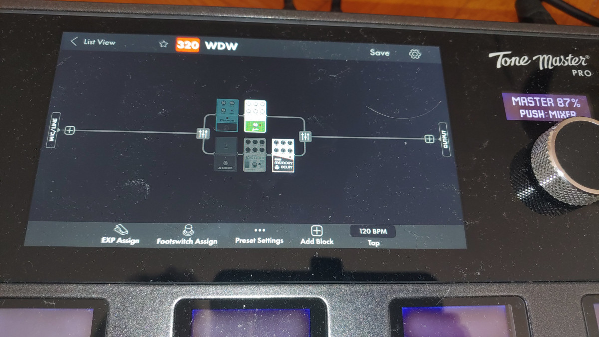 Alors je viens de faire mon premier test WDW avec le Tone Master Pro comme module Wet indépendant. C'est vraiment pas mal du tout. mais c'est un peu prise de tête à configurer le chainage, comme tu dis Rivera.