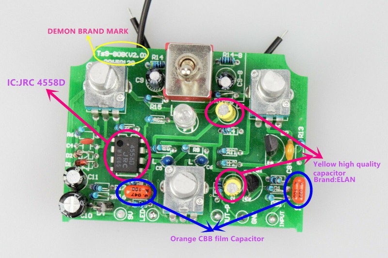 Un tube screamer classique, mais avec un switch permettant le passage soit au circuit TS0, soit TS808...