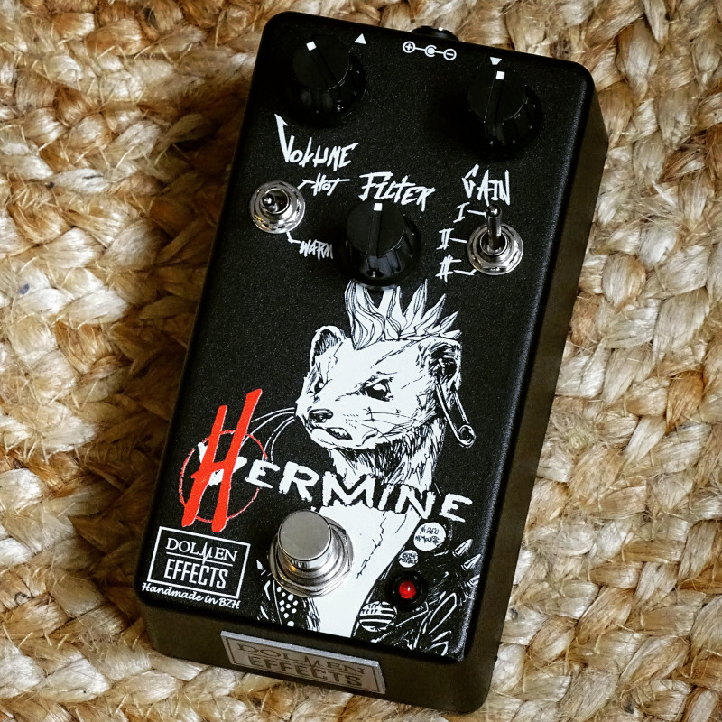 En bref, l'Hermine c'est une pédale de distorsion mythique revisitée par Dolmen Effects pour lui apporter de la polyvalence.