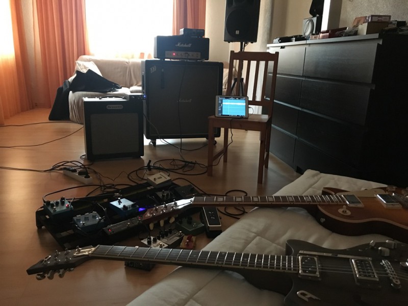 J'enregistre ma piste guitare sur ipad, en utilisant un shure 58 et une presonus audiobox 22vsl sur ipad.