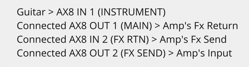Je voudrais connecter mon Ax8 avec mon ampli à lampes en 4cm (méthodes des 4 câbles) et sur la sono avec des Presets incluant des fxloop.