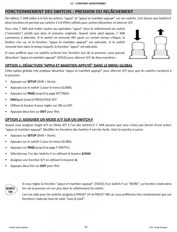 En fait, ce n’est pas vraiment de la “latence”, c’est dû au fait que le changement de préset s’opère dans la partie “remontante” du switch (car on peut aussi contrôler d’autres fonctions en restant appuyé sur un switch sans changer de préset).