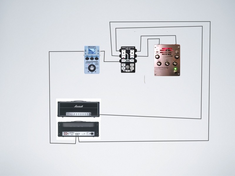 L'idée c'est en fait que le switch plutôt qu'un on off, active ou désactivé une boucle externe dans laquelle on viendrait plugger le preamp de son ampli. Exemple avec un AFD qui n'a pas de clean et une Crystal, onaurait un système parfait. Une zoom CDR ou mieux, une H9 et c'est l'arme absolue. C'est ce qu j'ai tenté de faire avec le SS 11, ça marche, mais le clean, y'a quand même pas de quoi se relever la nuit. Alors que la Crystal d'après ce que j'ai lu et vu sur YT c'est vraiment un clean typé twin hyper crédible.
