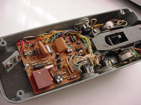 J'ai une Wha Cry Baby à restaurer, mais je ne connais pas ce modèle ! je n'ai trouvé qu'une seule photo sur le web qui dit que ce serait un modèle Thomas Organ 1967... les wha que je connais n'ont que deux transistors, là il y en a cinq (2 x 5115, 2 x 5117 et 1 x 5124)... la self semble être la TDK 5103. voici quelques photos :