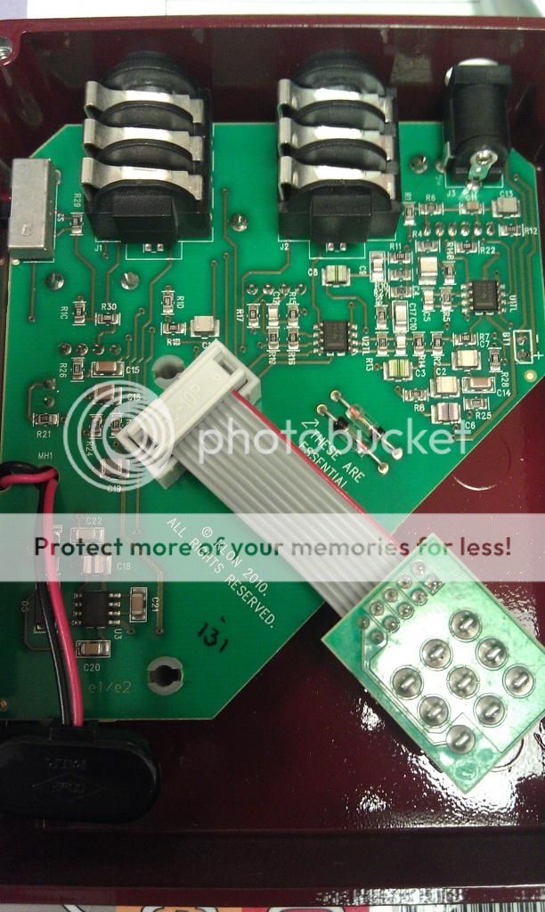 prends ta masse sur la prise DC , le contact en face de C11 (elle fonctionne bien avec une alim type boss ? le - a l'intérieur ? )