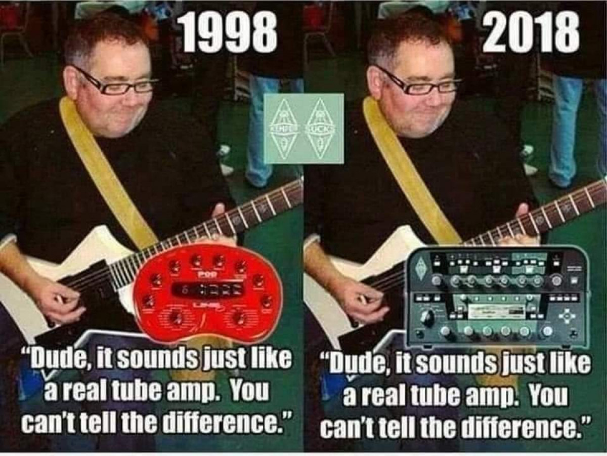 Par contre, un truc marrant, je me suis dit que c'était mon expérience des amplis à lampes qui me permettait de savoir le régler. Quand on a un son "classique" en tête, on sait plus vite comment le retrouver au niveau de la rondeur, du brillant,... Du coup, je reste convaincu que ceux qui trouvent que les POD sonnent comme des culs ne savent pas les régler, ou restent sur les presets (qui sont, bien sûr, dégueulasses).
