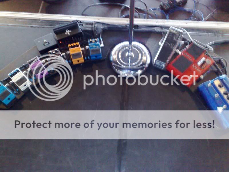 Pour les effets je n'ai pas de photos mais de memoire je me souviens d'un pog, d'un univibe je crois et coté disto il me semble que c'était une big muff PI US. Rien d'autre.