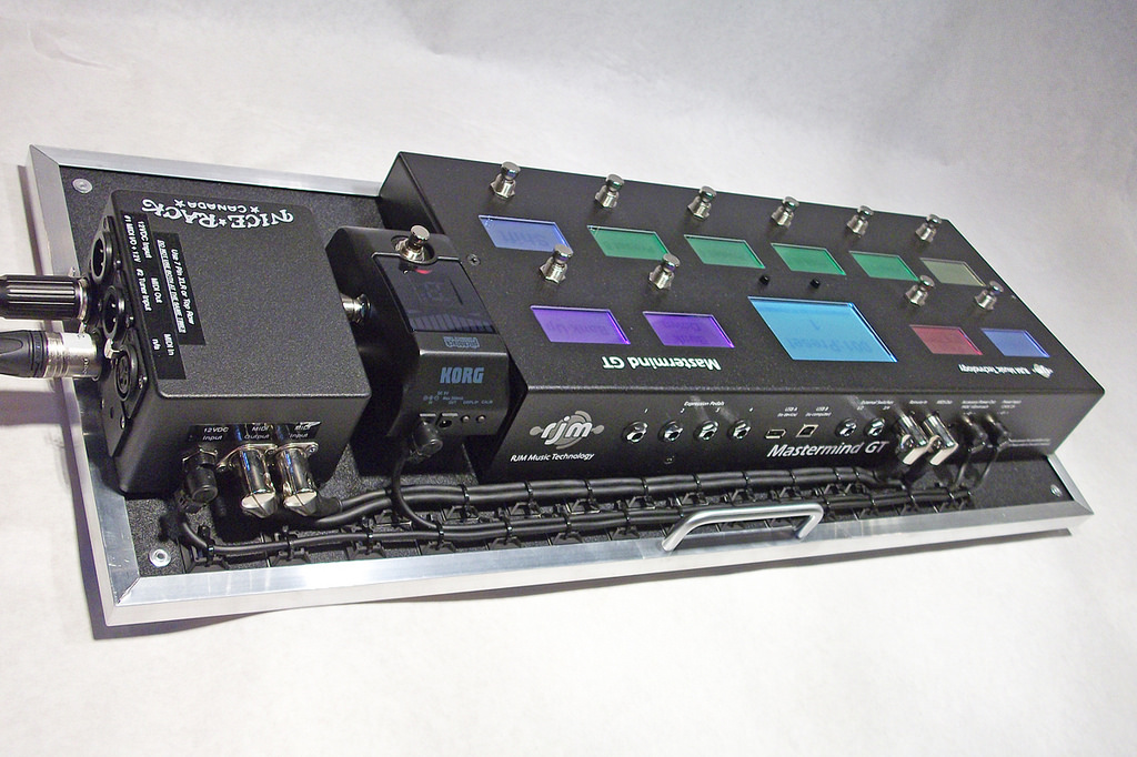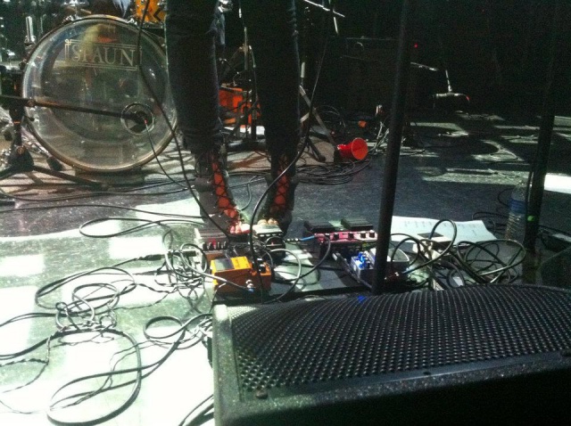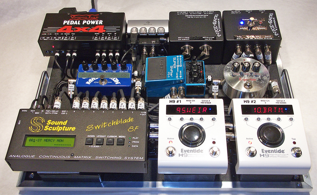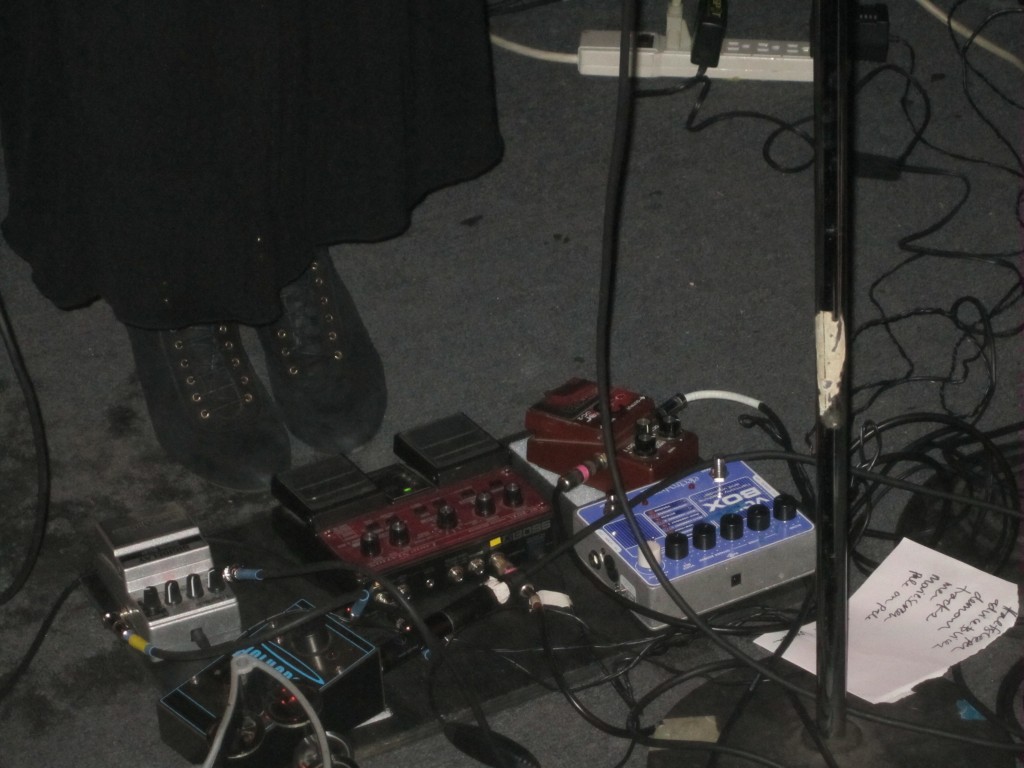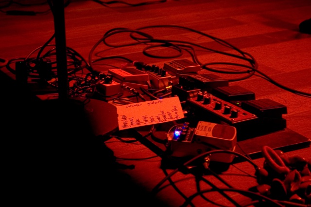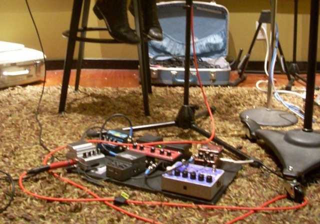 On note sur certains clichés la présence d'une Voodoo Lab Sparkle Drive et d'une Electro Harmonix Voice Box.