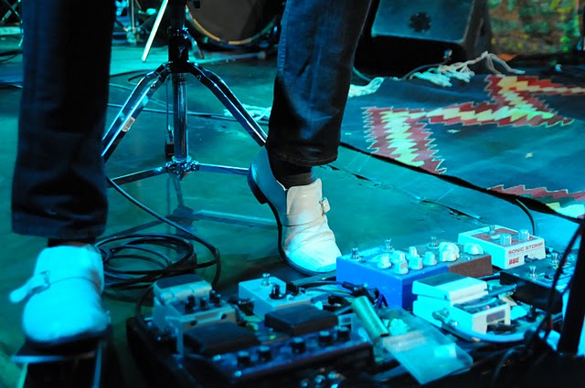 Most of our stuff is quite new. Philipp just recently bought a new Fender Jazz Bass and I mostly play a Guild Starfire IV which I got new 4 years ago, sometimes I play also a '78 or '89 Stratocaster (of the last one I'm also the first owner). I'd prefer to buy new guitars, so I can put my own vibes in the thing. I don't play any effect or distortion pedals (despite of occasional Wah-Wah) and just change the sound with the use of a volume-pedal so I'm very dependend on Amps which have a good distorted sound on their own and also get a beautiful clean tone when played at low volumes - old amps are mostly built to stay clean up to ear-splitting levels, so my amps are modern types too.... Live I mostly use a Soldano SL 60 and Sunn Model T reissue, each with two Fender GE 412 speaker-cabinets and in case the set-up mentioned before for vocals. I recently bought a very rare and complicated Fender 400 PS of the early 70s, maybe the most powerful instrument tube-amp of all time : ) and an old Sunn "Studio P.A." head from the late 60s. Both amps are in restauration now, which will cost me a fortune, but the amps themselves were really cheap : )