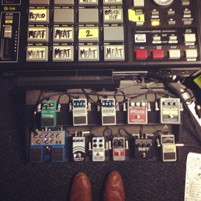 Il utilisait la Hoof comme booster toujours avec la TS enclanchée sur les parties "gros riff" pour gagner en épaisseur, le drive de celle ci étant toujours à zéro. Comme une sorte d'EQ qui ajoute du grain quoi. Les solos c'était souvent la TS seule.