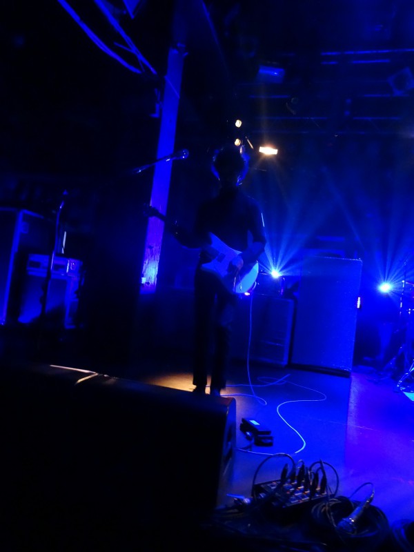 Je réponds très en retard, mais si je me souviens bien de ce que j'ai entendu, il utilise le looper à ce moment. Et ce qui est joué est restitué par le looper en mode reverse, c'est-à-dire joué à l'envers, ce qui donne cet effet.