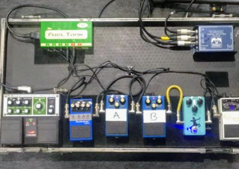 Si ça peut aider, son pedalboard doit ressembler à ça :