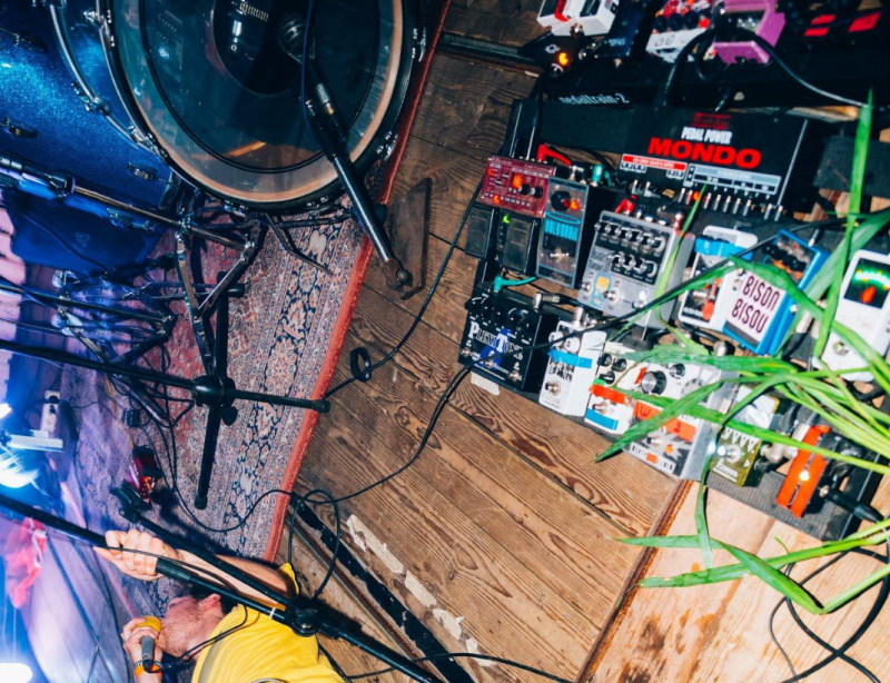 Le pedalboard du gratteux de Lysistrata, ptit groupe de djeun'z qui montent, dans le genre indie/math/post-rock. Vus en live, ça arrache.