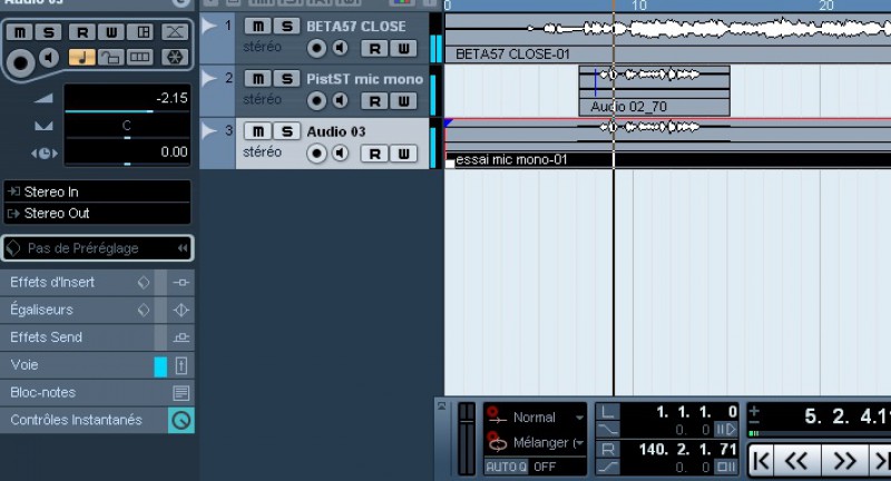 - sur le projet cubase, il y a aussi les groupes (dry/wet) qui rassemblent toutes les prises et permettent de se balader facilement d'une prise à l'autre avec le bon volume, voire d'y appliquer les mêmes effets.