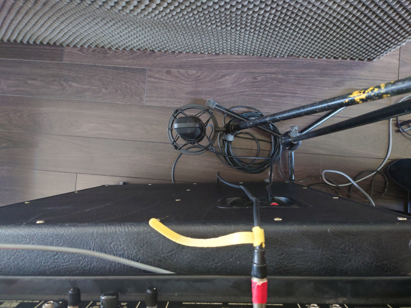 Quatrième micro, un AT4050 en figure de 8 loin (2.70m), orienté plutôt à 45°pour que l'onde directe du cab ne soit pas captée, mais uniquement des réflexions.