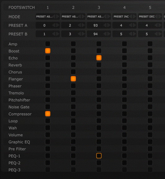 Du coup c'est très flexible. Sur les GX, on perd le mode pedalboard, mais en fait on peut le récréer individuellement et librement pour chaque patch, en ayant en plus la possibilité de réassigner selon chaque patch tous les contrôleurs au pieds : les manual, bank, CTL, tout est flexible.