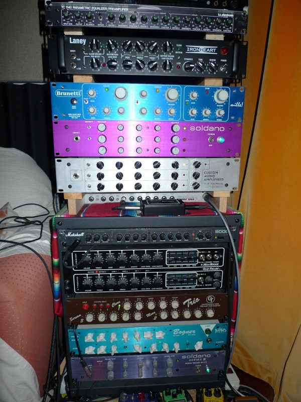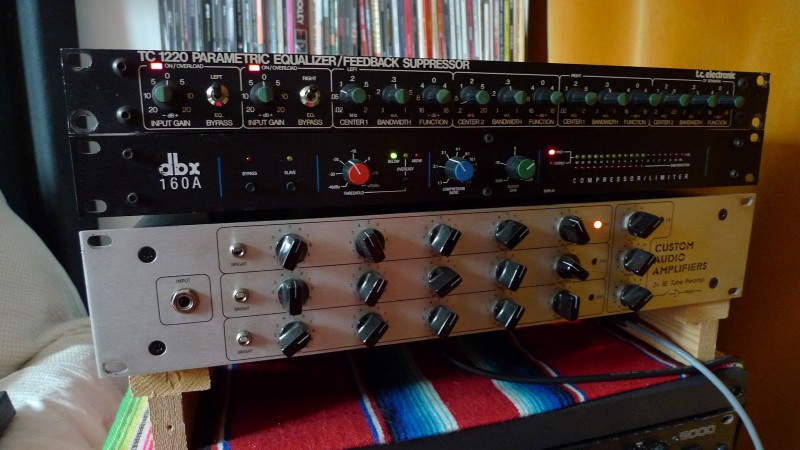 Entre les préampli et le poweramp, il y a un rack d'effets.