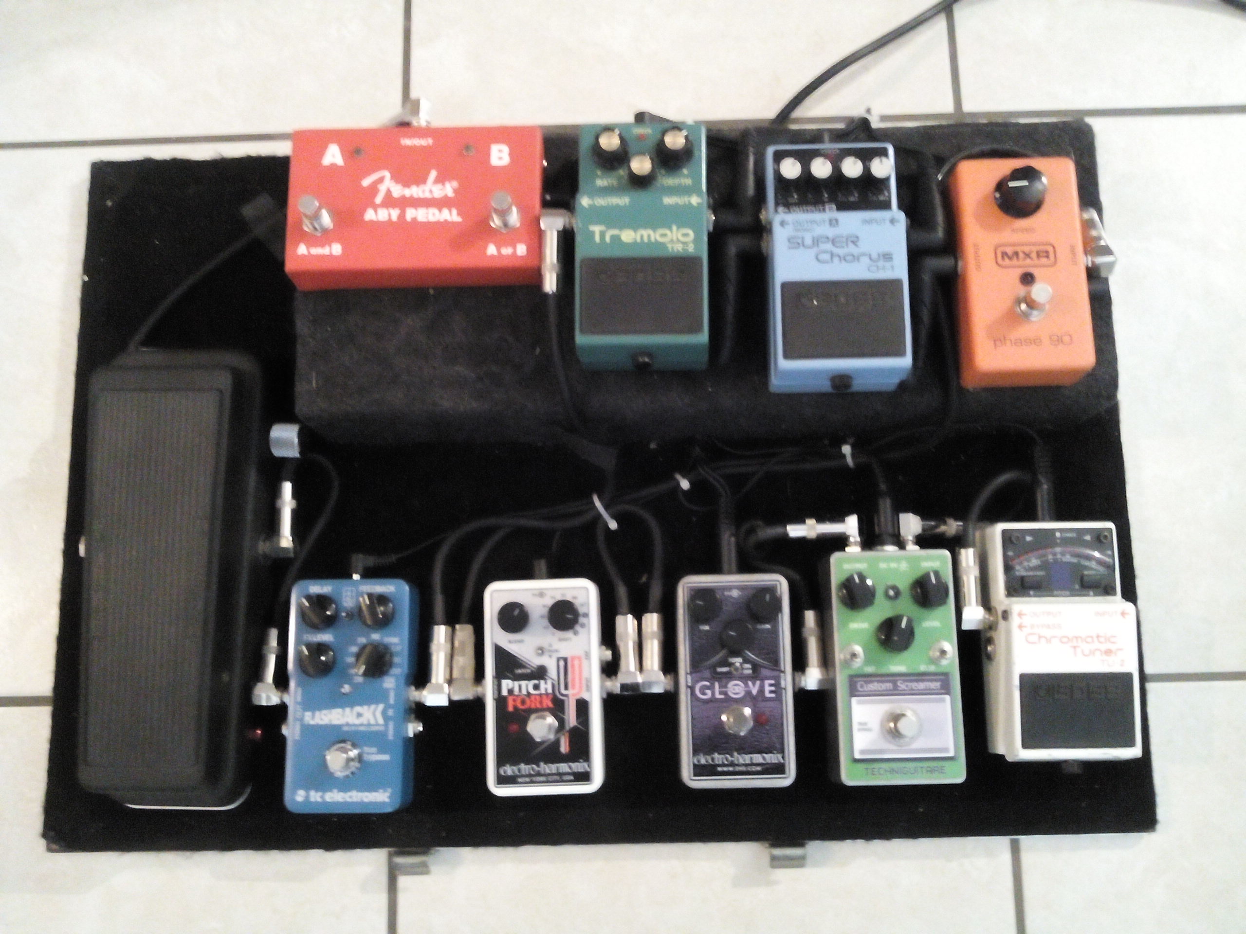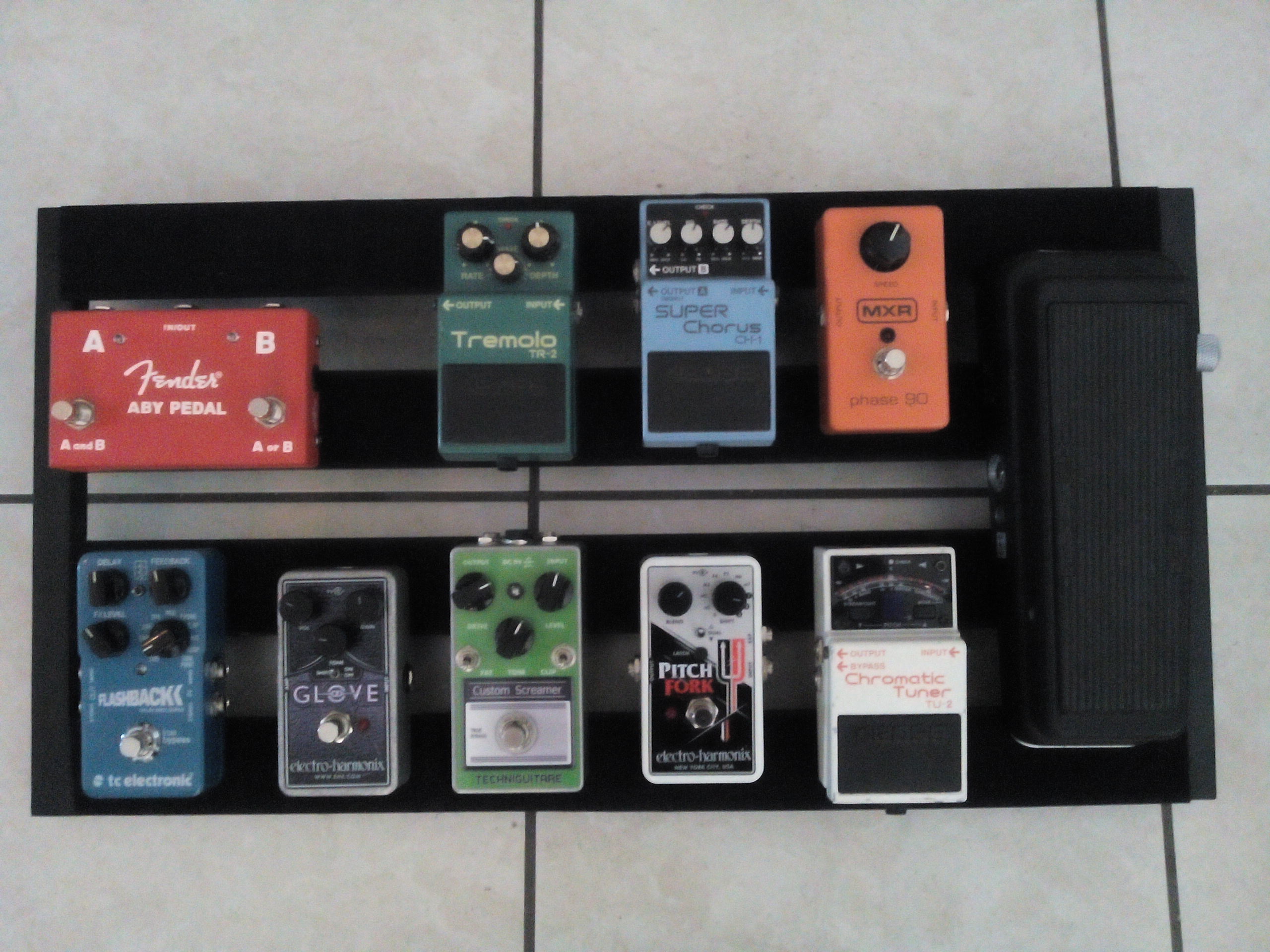 n'ayant plus de groupe, et voulant faire des choses plus minimalistes, je vends mon gros pedalboard "flycase", je voudrais repasser à un pedalboard type pedaltrain, surtout pour mettre l'alim en dessous (elle me prend la place de 2 pédales type Boss/MXR), mais aussi pour accéder plus facilement aux pédales qui sont derrière.