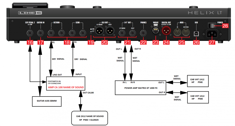 Bonjour les spécialistes de l'Helix je souhaite dégraisser mon rack et pédalboard de mon système wdw je vous fait un petit schéma avec l'helix lt ci-dessous voir si ça peut fonctionner ??