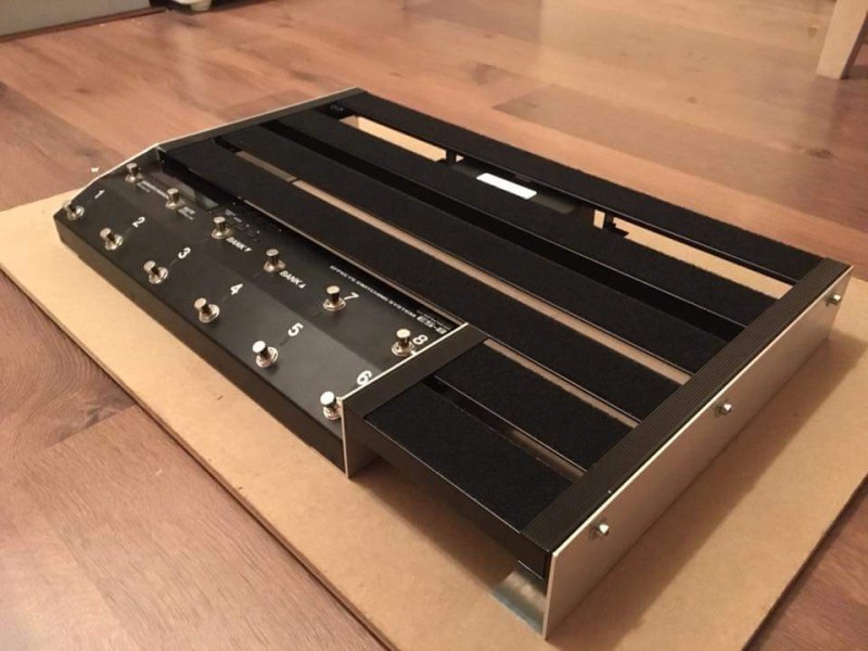 Mon ancien pedalboard était fait avec un profil de couverture (de toit ou de rebord de fenêtre). Il y en a de toute sortes, rarement très large (le mien fait une pedale volume EH de large, deux rangs de pédales normales). Mais tu en boulonnes deux. La longueur, tu peux aller jusqu'à 10m si tu veux. Sur les bord, tu colles ces bandes d'amortissement de porte (j'ai joué des centaines de fois dessus pendant 6-7 ans, et il commence à peine à y avoir un bout qui se décolle). Bref, je ne sais pas si tu as un pote qui bosse dans la construction métallique, mais ils ont des belles pièces pour faire du pedalboard solide et léger. Le seul problème est de travailler le métal (moi, c'est mon pote qui a scié la bonne longueur, percé pleins de trou pour les cables)
