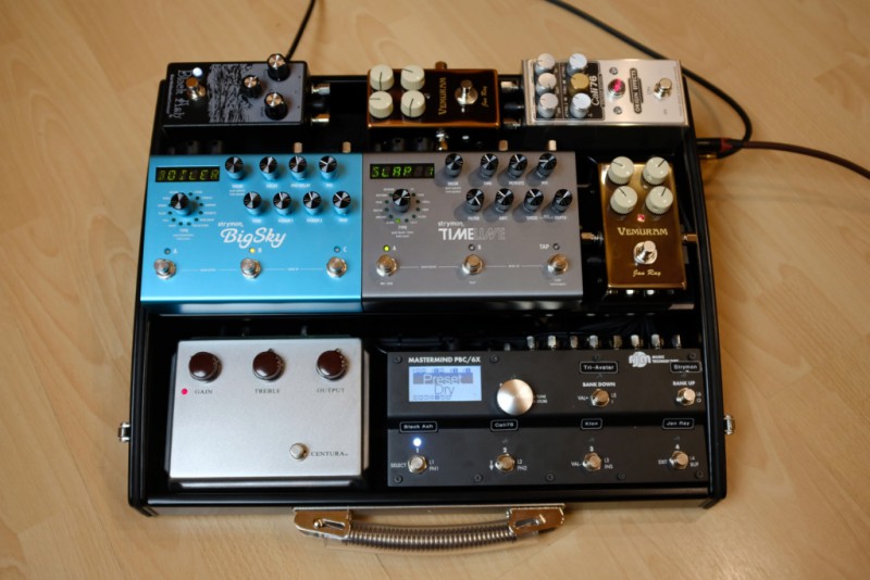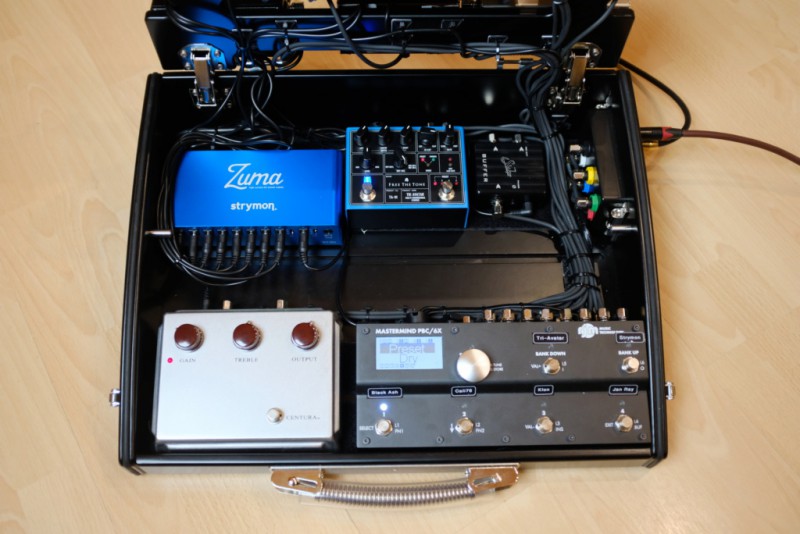 - Le coffre du dessous ne sert pas uniquement pour l'alimentation. J'ai positionné une petite Strymon Ojai sur le côté gauche qui ne prend pas beaucoup de place.