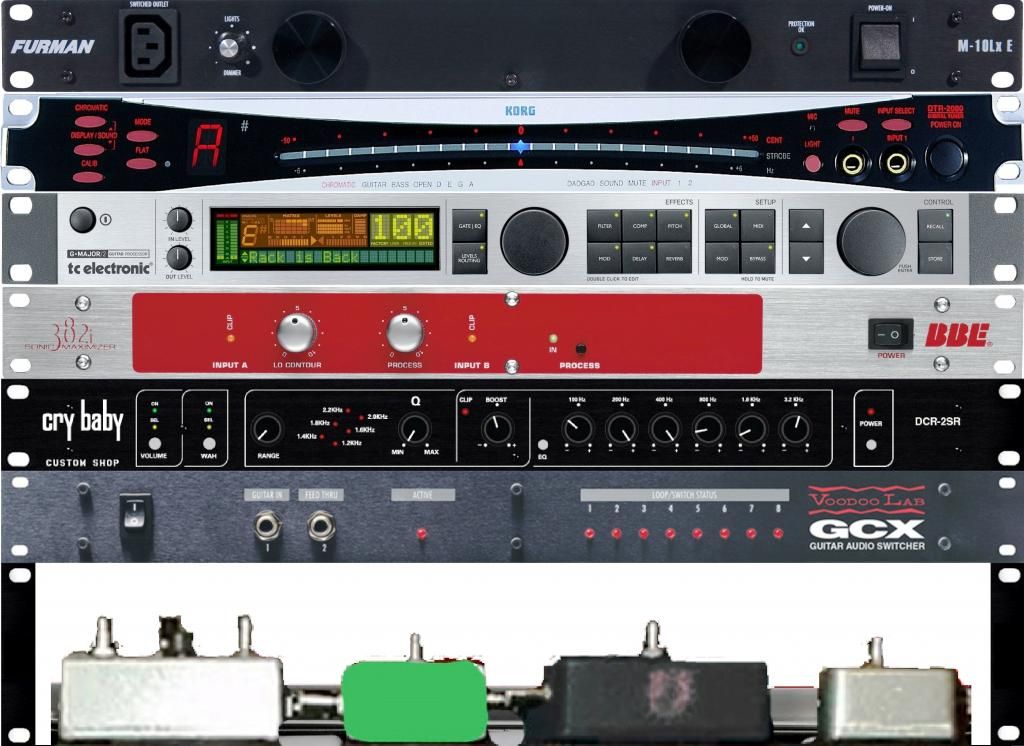 Après des discutions avec des potes dans la musique et mes revendeurs favoris, j'ai décidé de modifier considérablement mon kit. A la base il y avait beaucoup de pédales d'effet par terre et pas de rack. Après des recherche et des essais en magasin et/ou des avis sur le net, voici donc mon rig parfait (pour le moment)!!